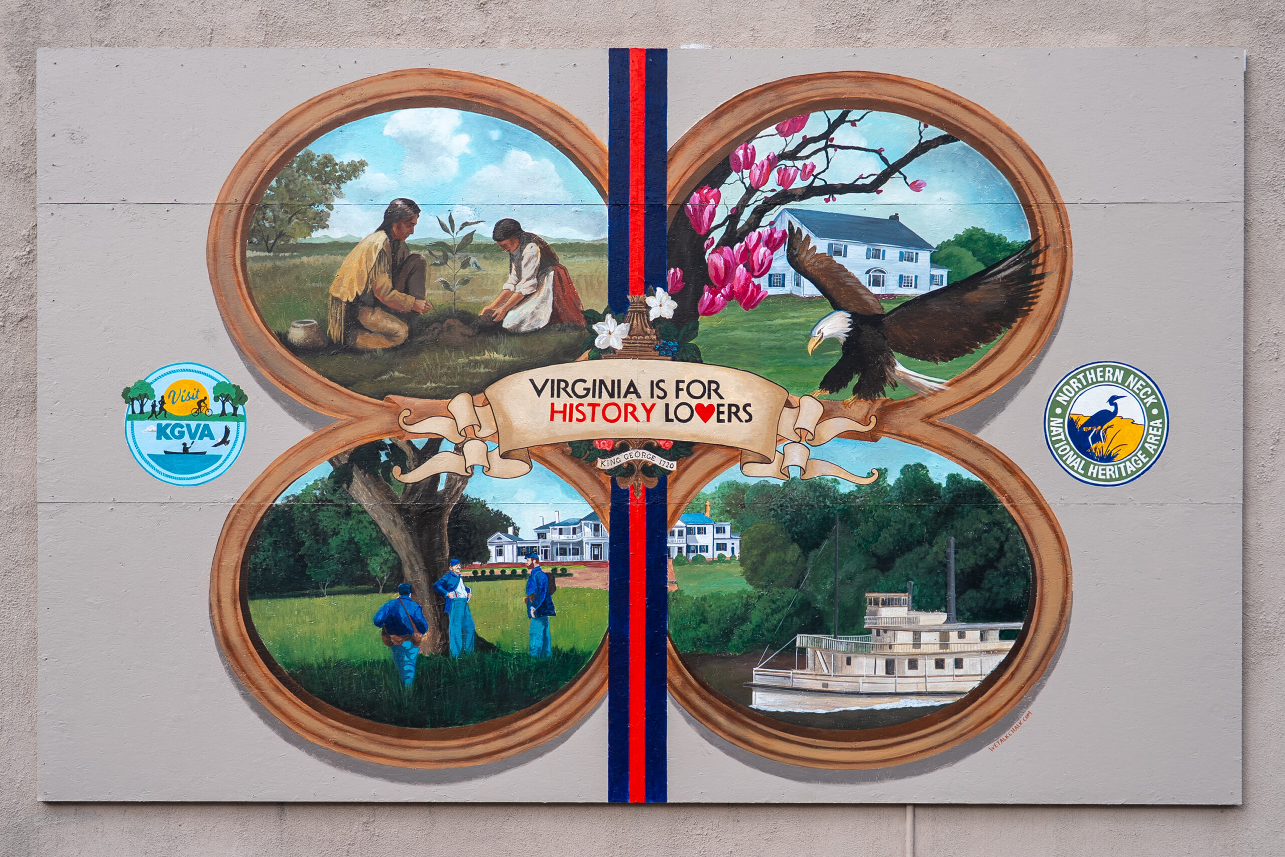 These murals are funded by a state grant from Virginia Tourism Corporation, administered by Northern Neck National Heritage Area, and sponsored by Visit King George.